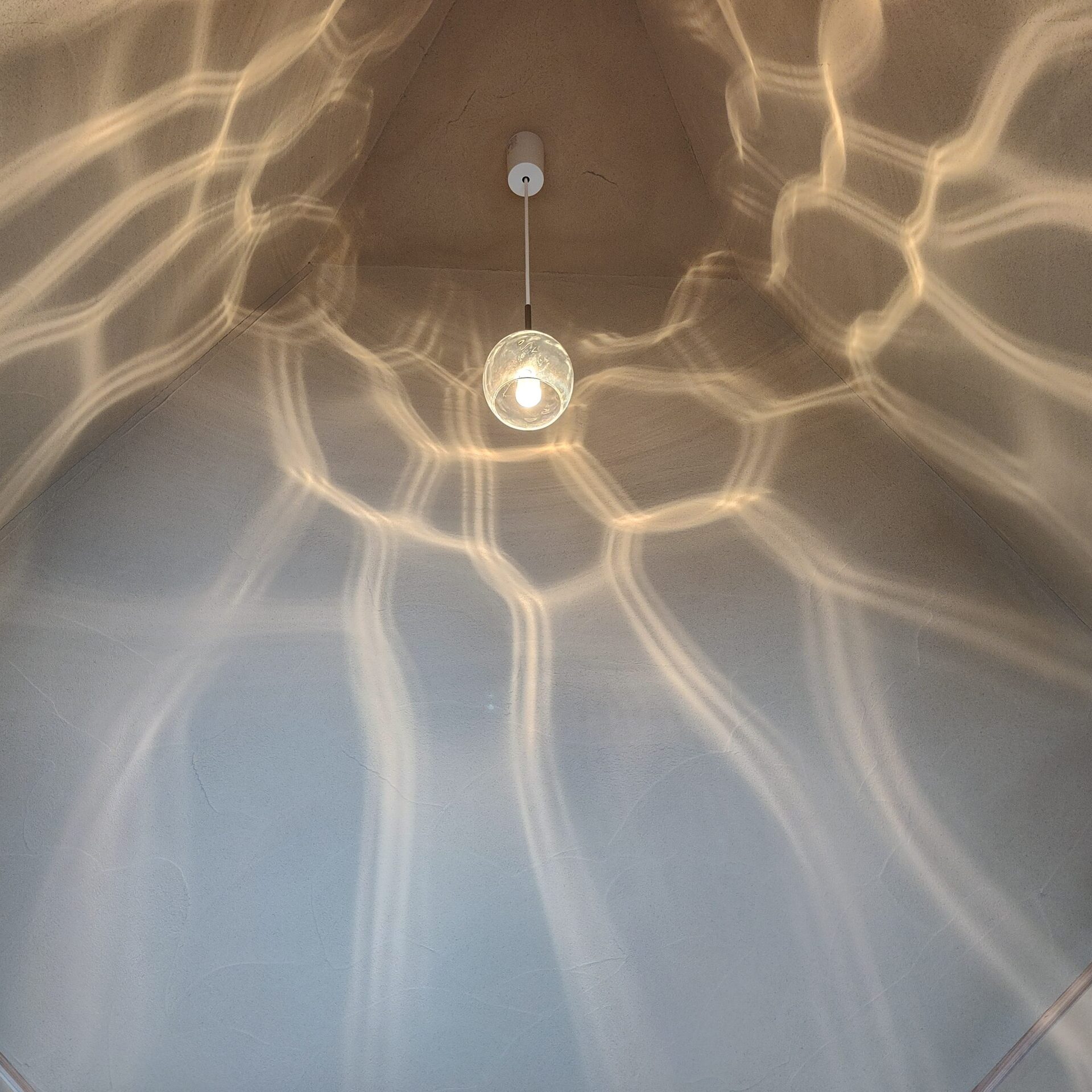 宙石を練り込んだ陶板の寝台と珪藻土の壁じんわりと芯からゆるむ心地よさ